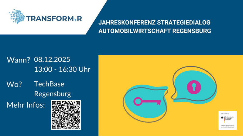 Die Veranstaltung ist Teil der Transformationsnetzwerke der Bundesregierung (Zuwendungsgeber: Bundesministerium für Wirtschaft und Energie, BMWE). Das Regensburger Projekt transform.r unterstützt Unternehmen bei der Bewältigung des Strukturwandels in der Automobilindustrie.