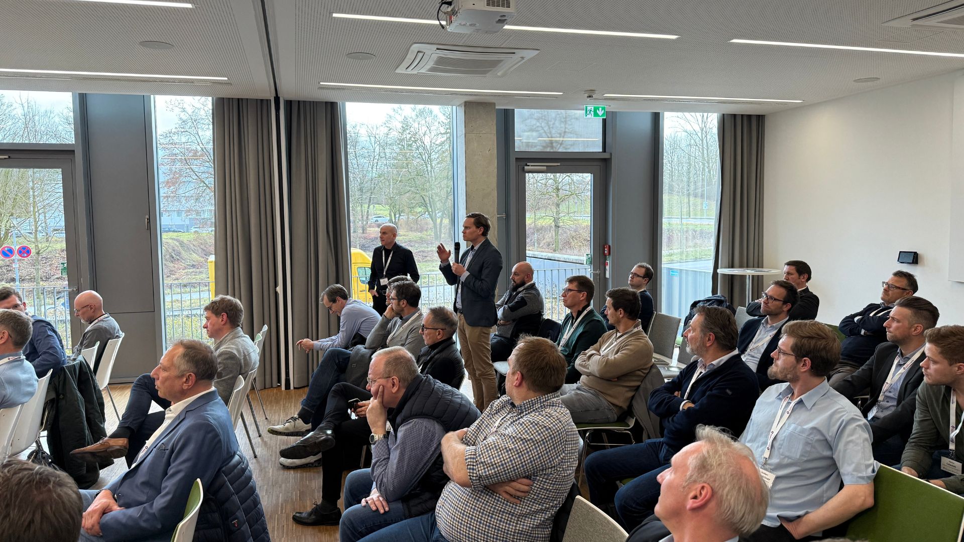 Der zweite Teil der Veranstaltung stand im Zeichen konkreter regionaler Leuchtturmprojekte. Hermann Hampel (sdp - system design performance.) stellte das Projekt „Smart Dynamic Public Lighting“ vor, das intelligente Lichtsteuerung für urbane Räume entwickelt. Es folgte die Präsentation einer gemeinsamen Batteriemodullinie durch Thomas D. (Webasto Group) und Florian Klimmer (Sonplas GmbH).