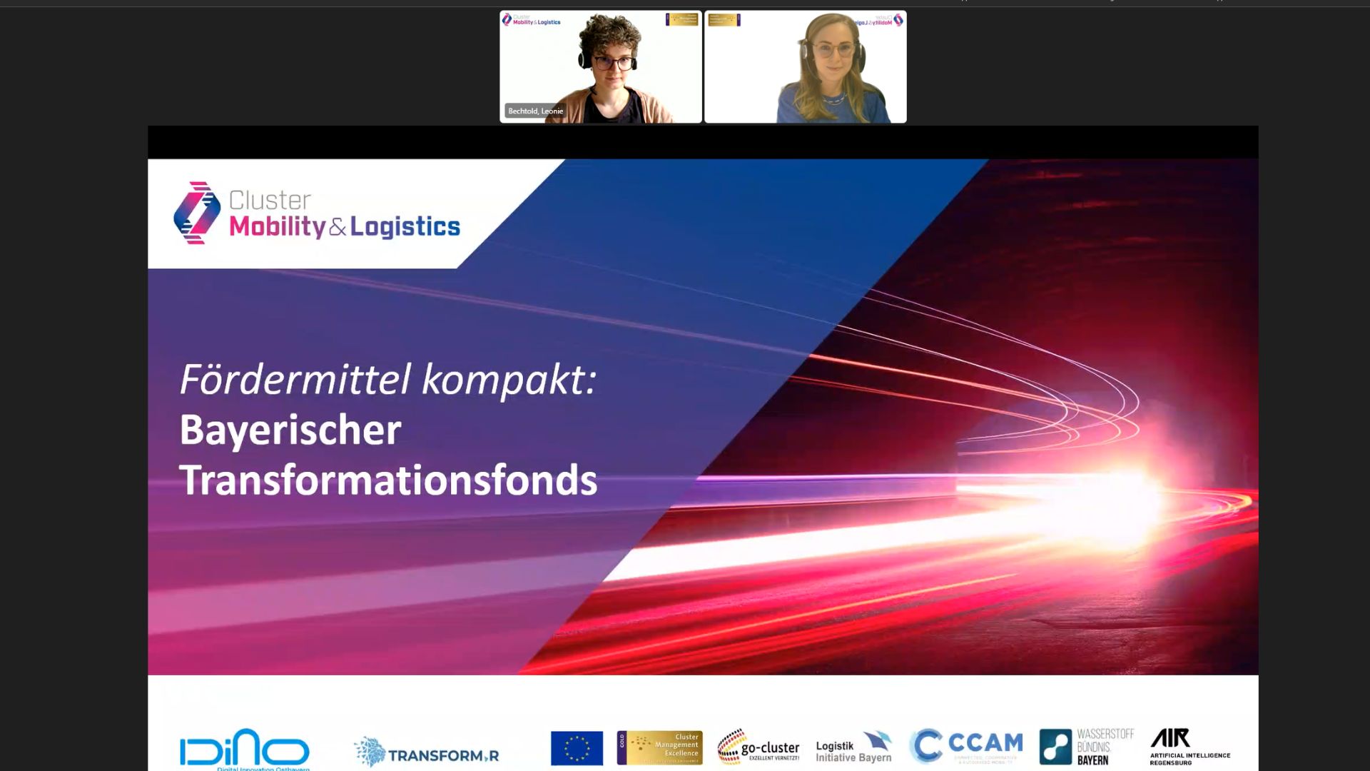 Hintergrund: Fördermittel kompakt ist eine Webinarreihe des Projekts DInO – Digital Innovation Ostbayern. DInO ist eines von drei European Digital Innovation Hubs (EDIH) in Bayern. Der Fokus liegt auf der digitalen Transformation bei KMU und öffentlichen Verwaltungen. Im Rahmen von DInO unterstützt das Cluster Mobility & Logistics mit Fördermittelberatung und internationalem Matchmaking.