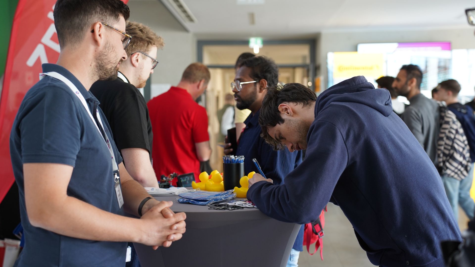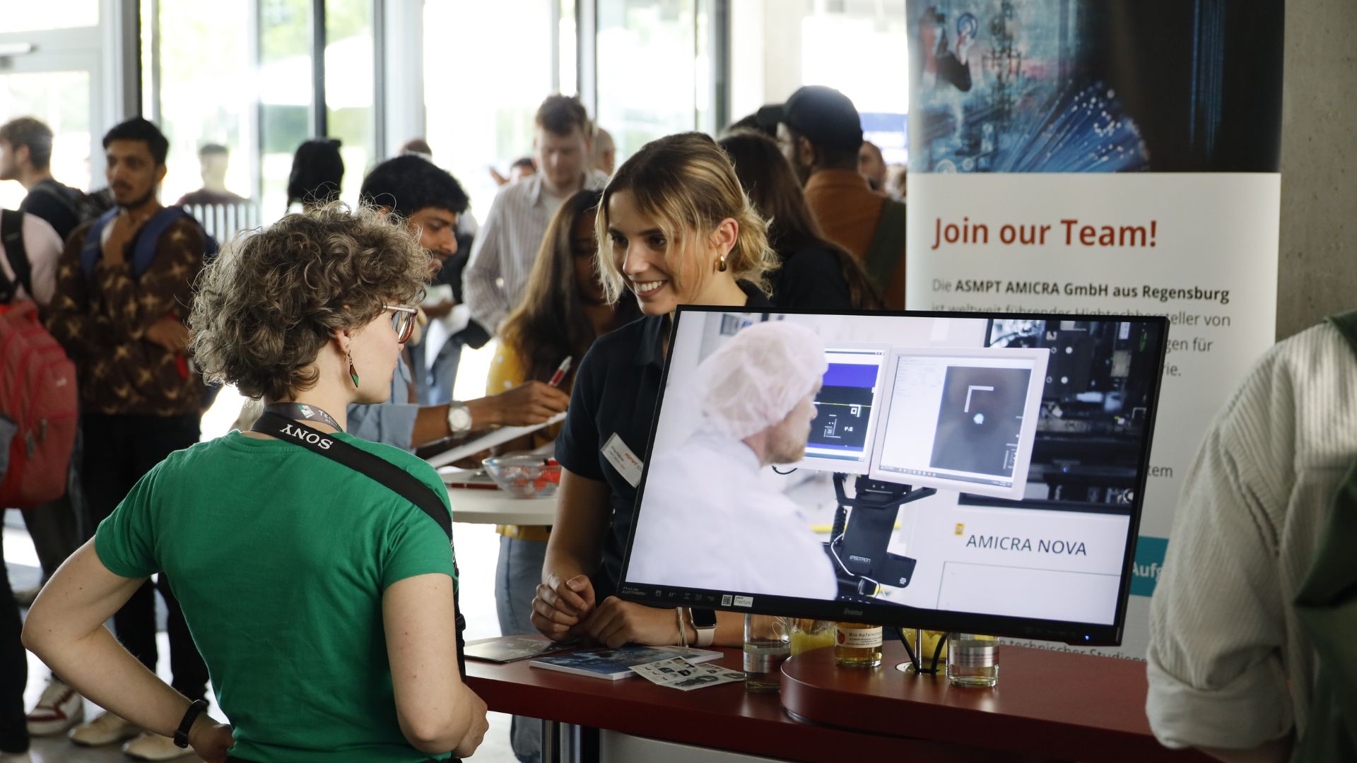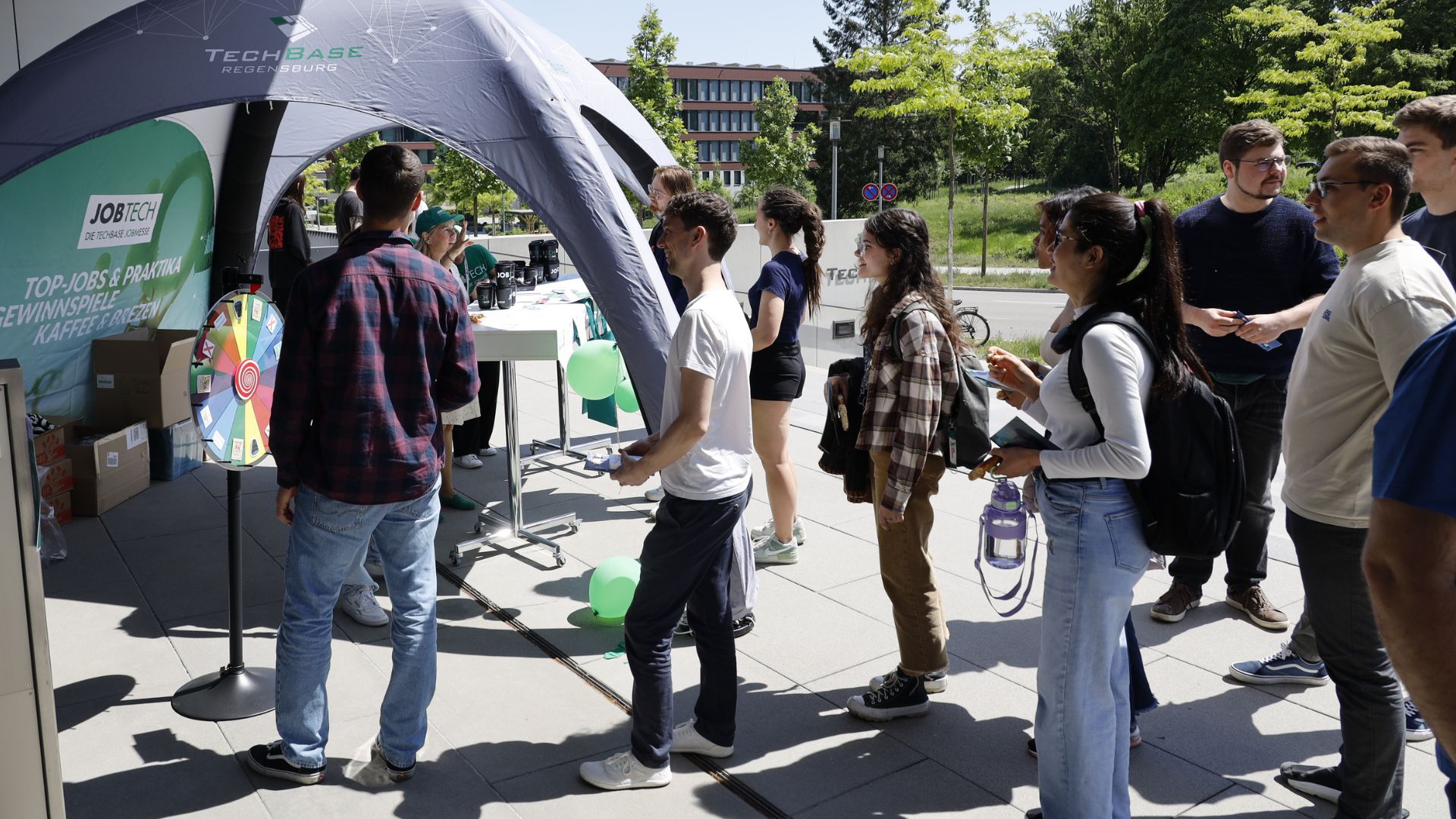Die TechBase öffnete am vergangenen Mittwoch, den 14.05.2024 wieder ihre Pforten zur JOBTECH, der Jobmesse der TechBase. In diesem Jahr präsentierten sich mit 41 Ausstellern zwar etwas weniger Firmen als in den Vorjahren, dennoch konnte die Zahl der interessierten Studierenden nochmals im Vergleich zu den Vorjahren gesteigert werden. Die weit über 1.000 Studierenden verschiedener Hochschulen und Universitäten aus Regensburg und Umgebung konnten im Foyer und verschiedenen Konferenzräumen der TechBase verschiedene Arbeitgeber kennenlernen und sich im persönlichen Gespräch über offene Stellen informieren. Abgerundet wurde das Angebot für die Besucher durch kostenlose Brezen und einem Glücksrad. All das machte die JOBTECH sowohl für die Aussteller als auch für die Besucher zu einer sehr gelungenen und erfolgreichen Veranstaltung.