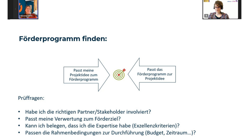 Die politische Einordnung einer Förderrichtlinie genauestens beachten, Stakeholder richtig involvieren, keinesfalls von den Formatvorgaben abweichen – diese und viele weitere Ratschläge erteilte Referentin Susanne Deisböck (Leyton Deutschland GmbH) im Webinar „Fördermittel kompakt: Förderanträge schreiben – How to, Dos & Don'ts“ am 20.11.2025. Deisböck blickt auf langjährige Erfahrung in der Beratung von Unternehmen bei Förderanträgen zurück und weiß daher umso besser, an welchen Faktoren Förderanträge oft scheitern. Dabei geht es um viel mehr als den sprachlichen und strukturellen Aufbau eines Antrags: Faktoren wie die passende Wahl des Forschungsgegenstands und des Konsortiums sind unerlässlich.